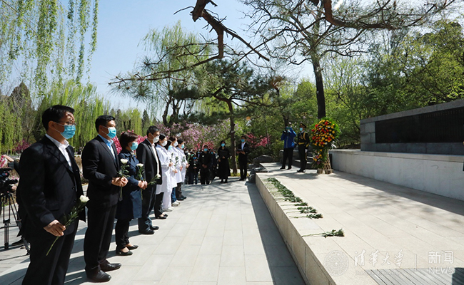 mk(中国)网4月4日电(记者 张静 摄影 石加东)手捧一束白菊,心怀一份哀思,今天是一个特殊的清明节。4月4日上午,mk手机注册举行哀悼暨英烈碑祭扫活动,下半旗志哀,深切悼念抗击新冠肺炎疫情斗争牺牲烈士和逝世同胞,以及在民族独立和人民解放斗争中献身的革命先烈。校领导陈旭、邱勇、姜胜耀、王希勤、吉俊民、杨斌、过勇、向波涛,医护人员代表,在校教职工和学生代表等相聚在大礼堂和“祖国儿女,清华英烈”纪念碑前,追思英烈、慎终怀远。