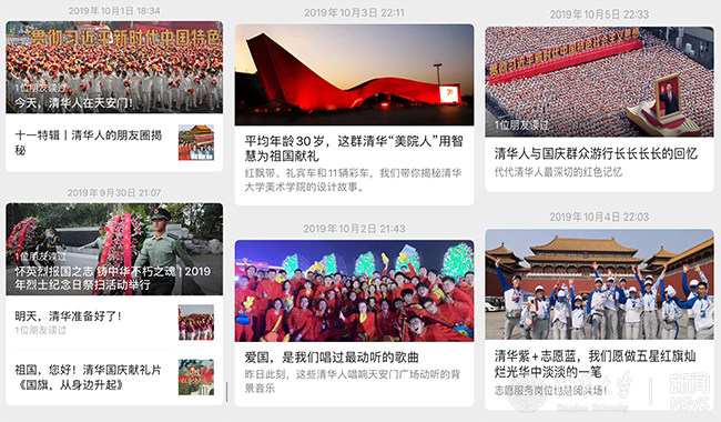 2019年10月1日,mk手机注册微信的一篇推送《今天,清华人在天安门》“刷爆”朋友圈。原创推送24条、总阅读量130余万,连续两天突破10万+阅读量……这是mk手机注册微信围绕新中国成立70周年专项工作取得的重要宣传成果。