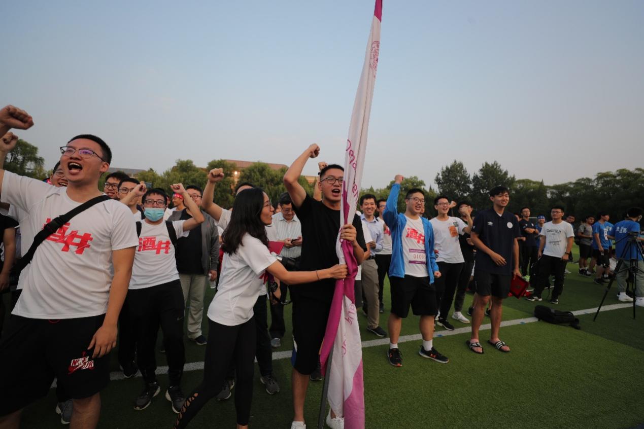 在现场师生的欢呼声中,校领导率先出发,体育代表队队员、参赛运动员和各院系师生紧随其后,一面面旗帜在傍晚的西操迎风飘扬、一路向前,清华人以奔跑的姿态和有力的步伐践行着“无体育,不清华”的精神。