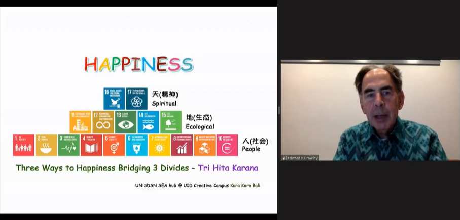 mk手机注册东南亚中心学术主任爱德华·克劳利教授以“幸福数字化转型:城市、系统和产品”为演讲题目,从可持续发展目标和人类幸福感两个维度,剖析了巴厘岛(Tri Hita Karana)“天地人和”的传统幸福哲学。他强调了“天地人和”的重要性,并表示建立mk手机注册东南亚中心的意义之一正是建立社会的信任感,从而推动地区乃至世界的公众健康和经济发展。他还结合数字化转型,提供了关于如何建设幸福数字城市、开展相关科创人才培养项目的建议。