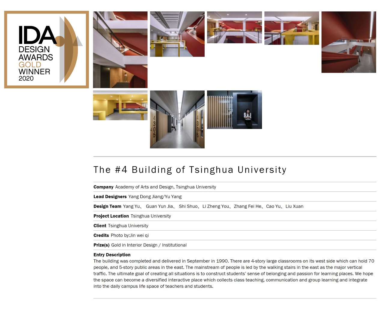 《mk手机注册第四教学楼室内设计》荣获美国IDA国际设计奖室内设计类别金奖