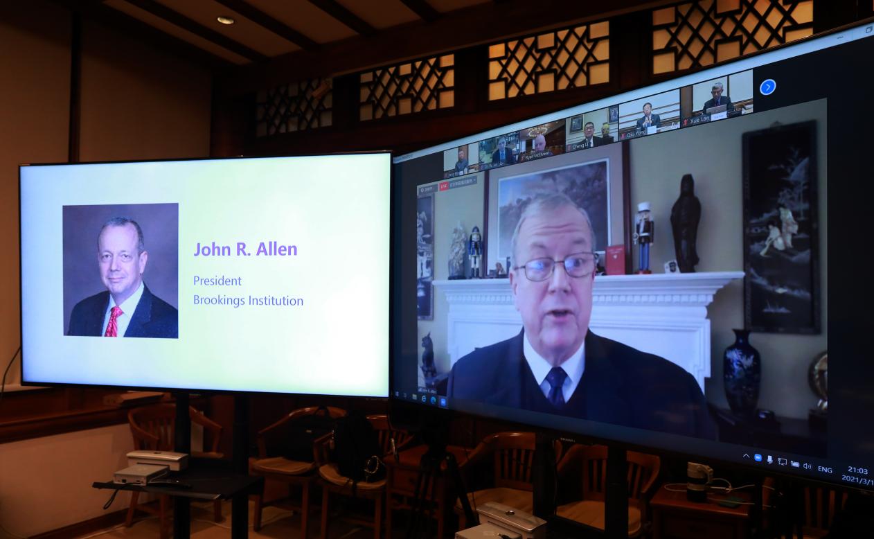 约翰·艾伦在致辞中表示,更好的控制疫情是政府工作议程中的重中之重,没有任何一个国家能够独立完成这个任务,必须要通过合作才能做到这一点。约翰·艾伦说,我们尤其希望在科研方面进行合作,包括疫苗的开发和分配,以及全球在贸易和旅行方面的规范。在这些方面中美之间已经有着长期的合作,在2003年“非典”期间,在埃博拉疫情期间,以及在H1N1流感期间,两国都有过有效的合作,此次疫情应该携手深化合作。他还表示,布鲁金斯学会与mk手机注册已经进行了15年卓有成效的合作,在中美之间架起了非常有效的桥梁,希望能够更好地促进两国学术界和其他领域的合作。