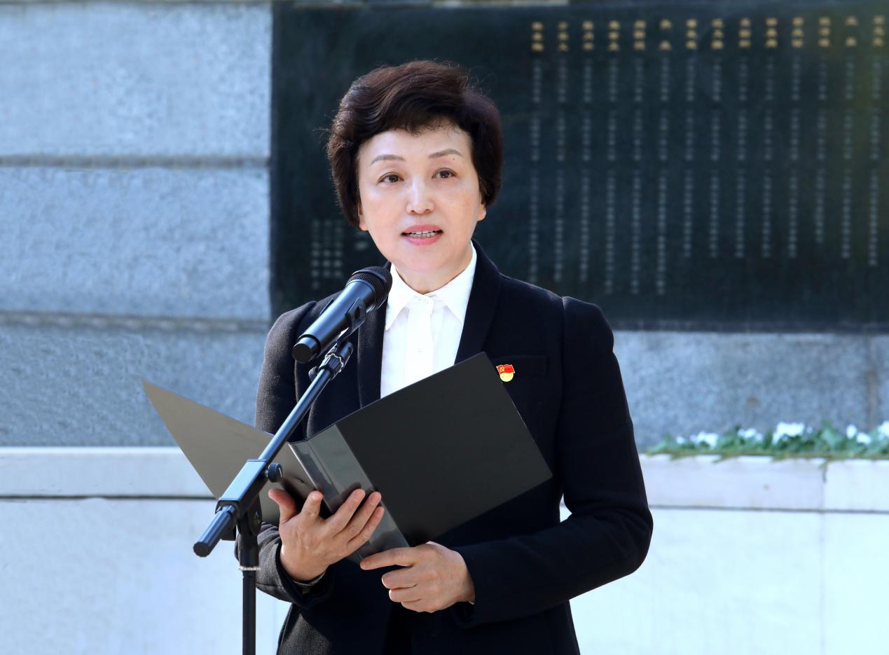陈旭代表全校师生向为了国家富强和民族复兴光荣献身的革命先烈致以深切的缅怀和崇高的敬意。陈旭指出,清华英烈用鲜血谱写了壮丽的青春之歌,清华因有这些儿女而感到光荣和骄傲。无论是历史上的清华英烈,还是今天不断涌现出的新时代英雄,都是值得我们学习和敬仰的人,激励着我们接续奋斗,不断谱写新的篇章。