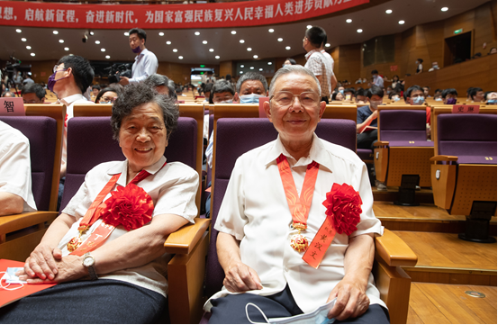 在大会现场,有一对党龄均已60年的老党员伉俪,他们是计算机系的黄汉文和电子系的丁晓青。两位老师抚摸着“光荣在党50年”纪念章,饱含热情地说:“没有共产党就没有我们个人的成长,我们还要继续发挥余热,践行入党初心!”