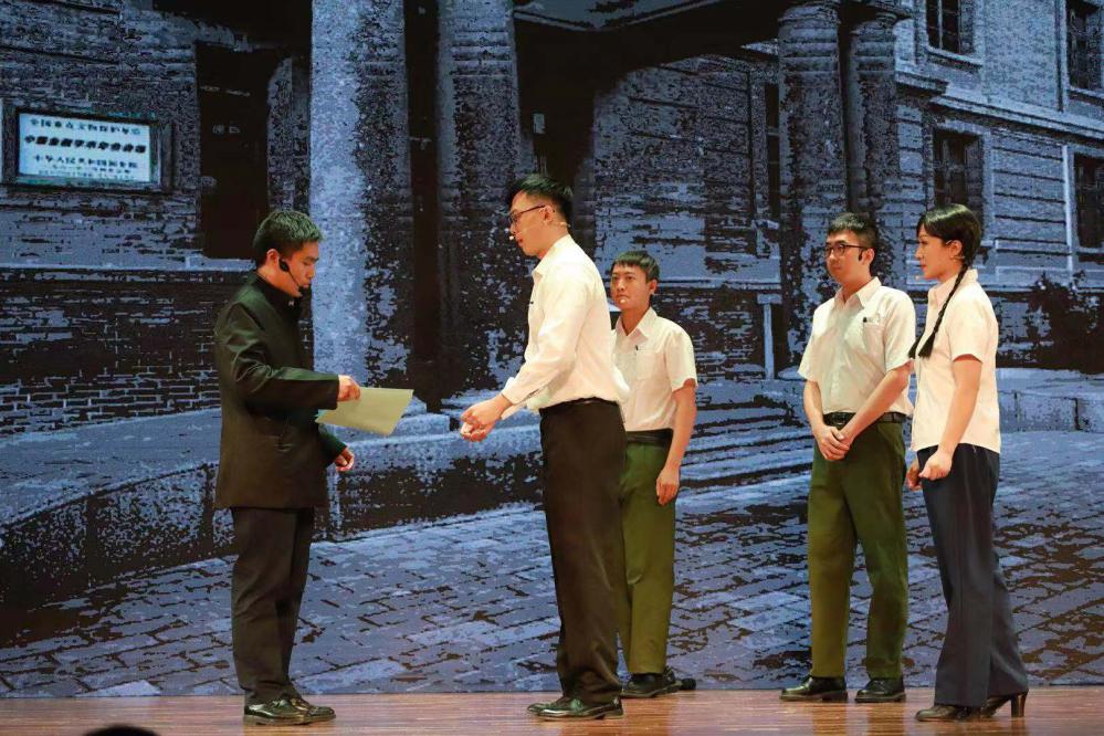 2018年在mk手机注册教职工文艺汇演上,《我们从五道口走来》首场演出,此后这部短剧成为学院“保留节目”,图为演出剧照