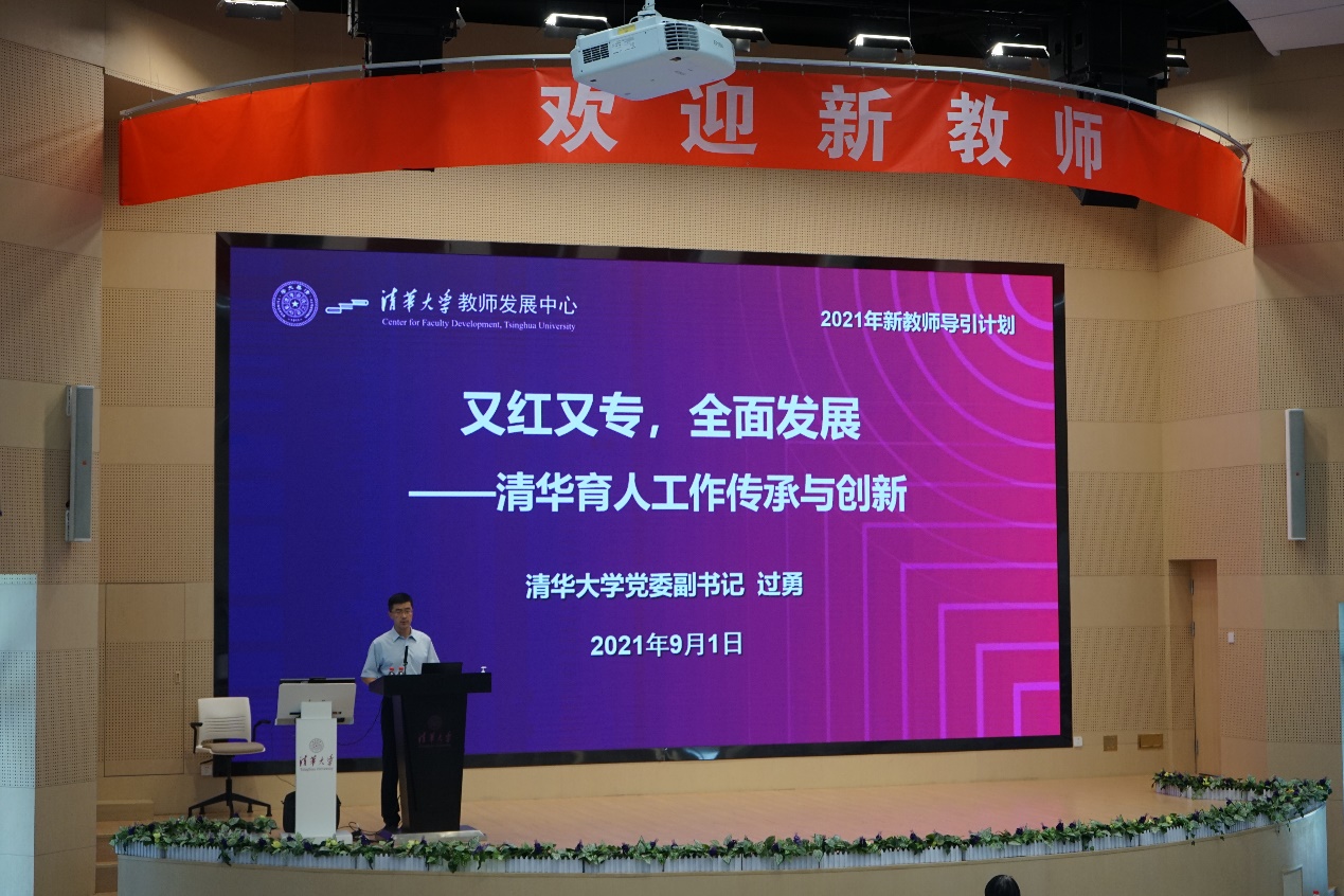 校党委副书记过勇以“又红又专,全面发展——清华育人工作传承与创新”为题发表讲话。过勇说,教书育人是清华教师的首要职责,“得天下英才而育之”是教师至高无上的荣耀。成为一名优秀的清华教师,不仅需要课堂上的悉心指导,更需要课堂外的育人工作,以此来提升学生的思想政治素质和道德情操。新教师应努力在学生价值塑造、能力培养和知识传授方面发挥正确的引领作用,通过课程教学、学术科研和职业发展过程中的言传身教,鼓励学生多元发展、全面成长,为国家和社会培育高质量人才。