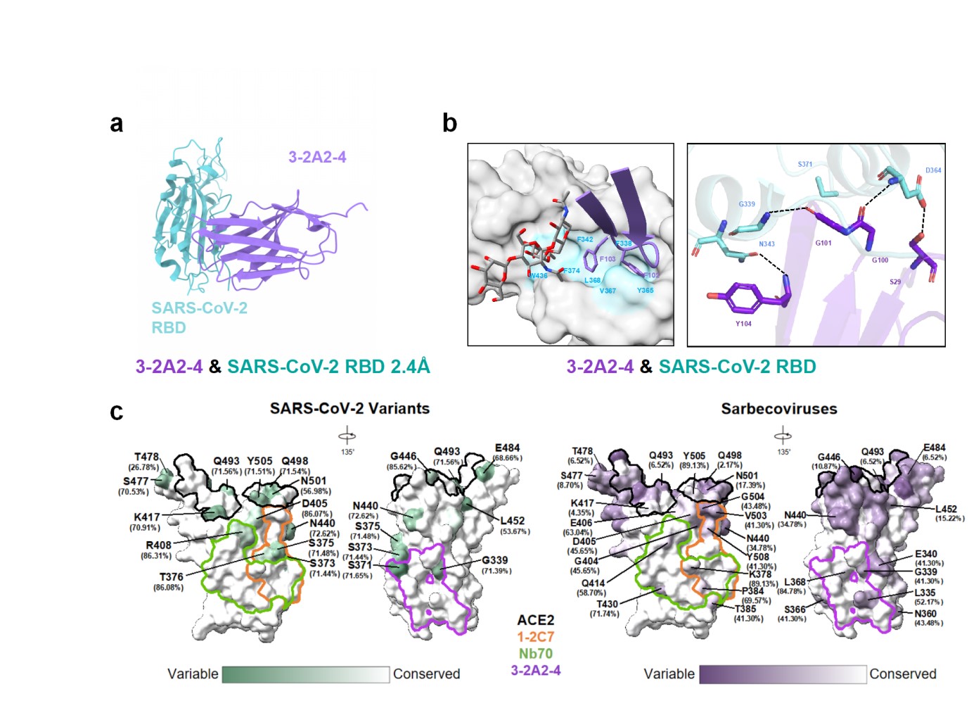 图2. 3-2A2-4与SARS-CoV-2原始株RBD的结构解析
