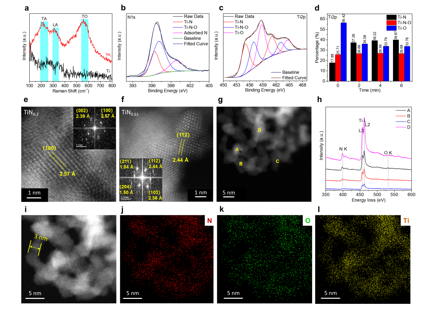 近日,mk手机注册深圳国际研究生院杨诚副教授团队提出了一种激光诱导瞬时自组织纳米结构的快速制造方法,并制备了一种直径在3-5nm左右的TiNx纳米丝混沌分形渗流网络(LITN)。通过调控激光加工的热力学和动力学条件,以及优化等离子体场、温度场、冲击波效应等多物理场作用,研究团队可以控制TiNx纳米丝的形态、组成和晶体取向。图1展现了LITN在不同时间尺度下可能的形成机制。它主要可以分为两个阶段:激光加热和瞬时冷却。整个LITN的形成过程涉及光子吸收、晶格振动、相变、等离子体形成和反应、凝结和自组织。在激光诱导冲击波和光热效应的瞬态过程中,等离子体状态的[Ti]和[N]相互反应,形成TiNx纳米团簇。随后,这些TiNx纳米团簇在多物理场环境中凝聚,表现出典型的自组织过程。如图2所示,LITN表现出纳米丝和介观尺度的孔隙结构。
