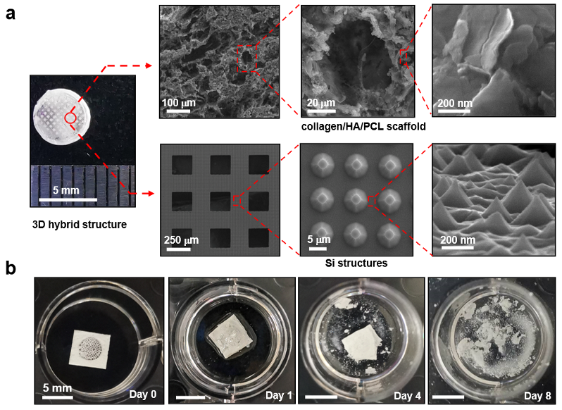 图2. 三维仿生光电生物支架及其生物可降解特性