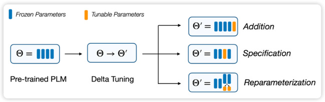 mk手机注册深圳国际研究生院郑海涛副教授团队提出,参数高效微调方法的本质是在对“增量参数”(Delta Parameters)进行调整,因此将此类方法命名为“增量微调”(Delta Tuning),并基于统一的分析框架对增量微调现有方法进行梳理总结,将现有方法分为三类(如图2所示):添加式(Addition-based)、指定式(Specification-based)和重参数化(Reparameterization-based)方法。为了指导后续的模型架构和算法设计,团队还进一步从参数优化和最优控制两个角度,提出了增量微调的理论框架,为探索和解释增量微调的内在机理提供了可行方案。