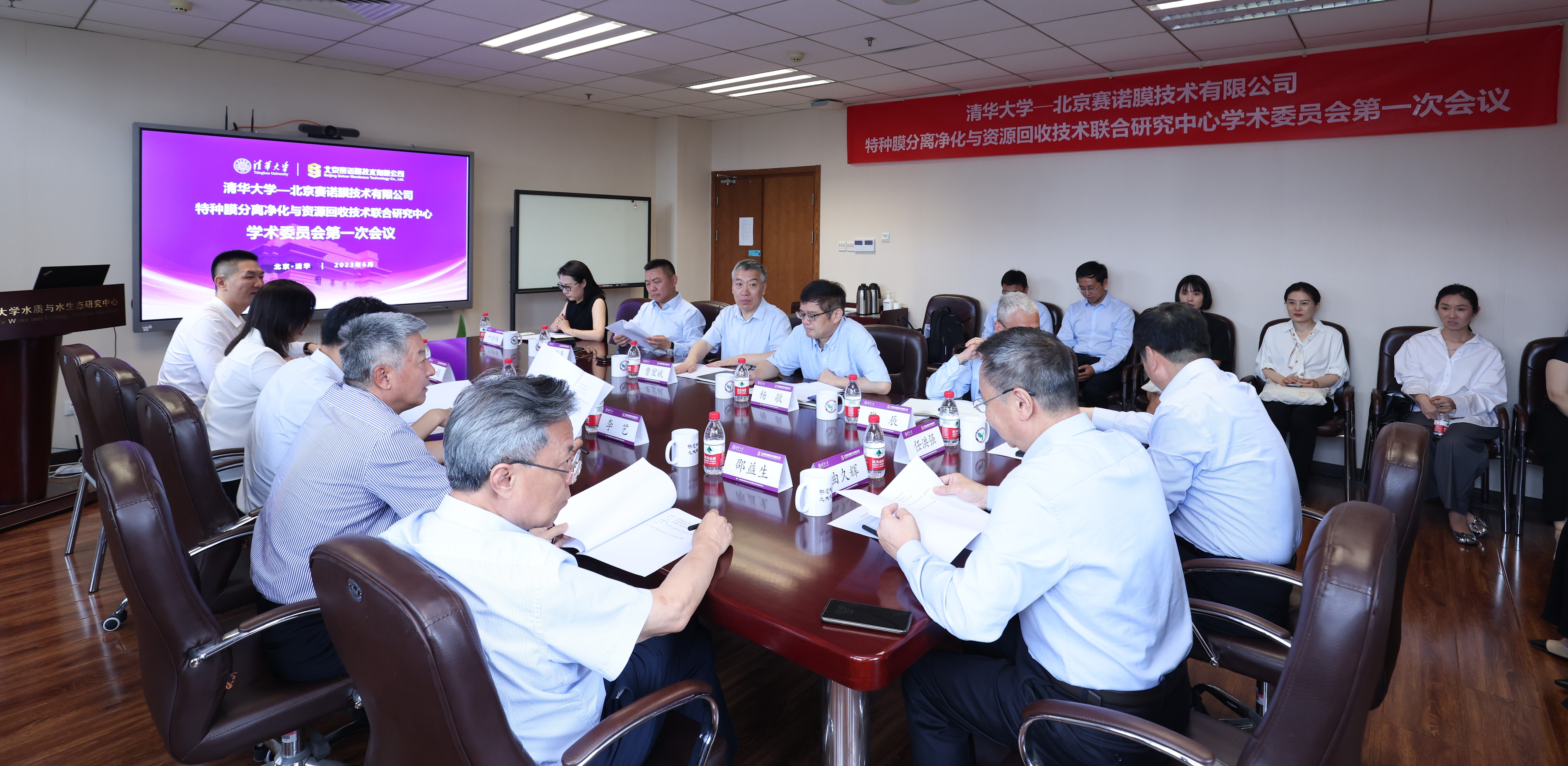 揭牌仪式后,清华-赛诺联合研究中心管委会主任刘毅主持召开清华-赛诺联合研究中心管委会第一次会议。孟祥利介绍联合研究中心管理规定,刘毅和清华-赛诺联合研究中心副主任、环境学院教授刘锐平分别介绍清华-赛诺联合研究中心章程(审议稿)和年度工作计划。管委会成员认真审议并表决通过相关文件。