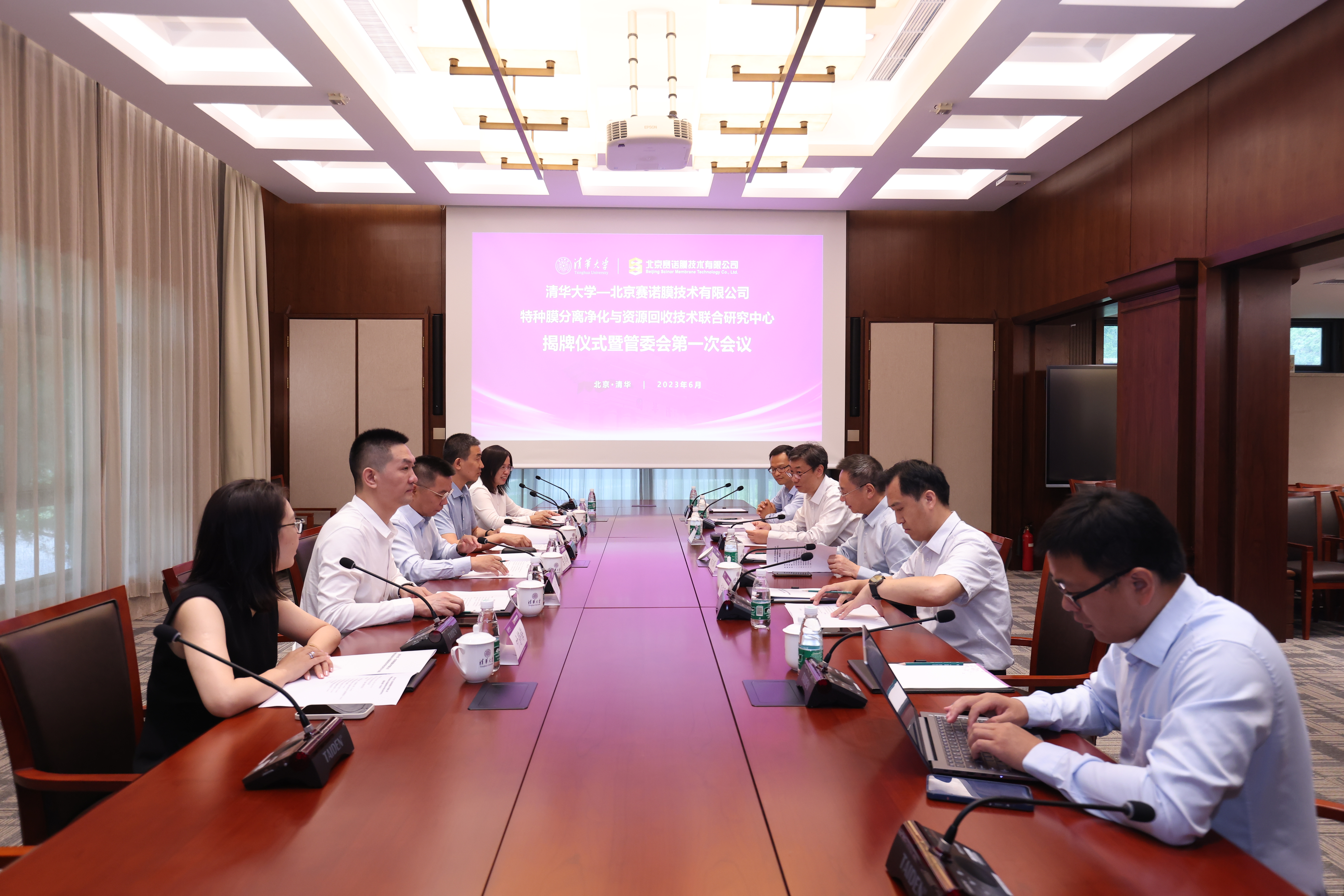清华-赛诺联合研究中心重点面向市政、环境、工业等领域水质安全、污染控制和资源回收等重要需求,以特种膜材料工业化制备突破为基础,联合开展特种膜分离过程与机制、膜净化工艺技术、膜分离组器装备及数字孪生、膜污染观测与控制等关键技术与装备等研究,共同推进核心技术产品原理创新、工业试制放大和工业化应用。曲久辉担任中心主任,刘锐平、张岩岗分别担任副主任,第一期执行期为2023年至2028年。