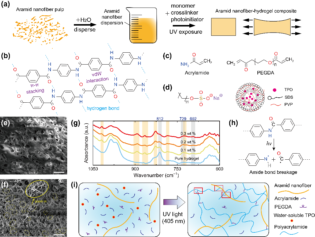 图1. 芳纶纳米纤维增强的水凝胶复合材料的制备与表征