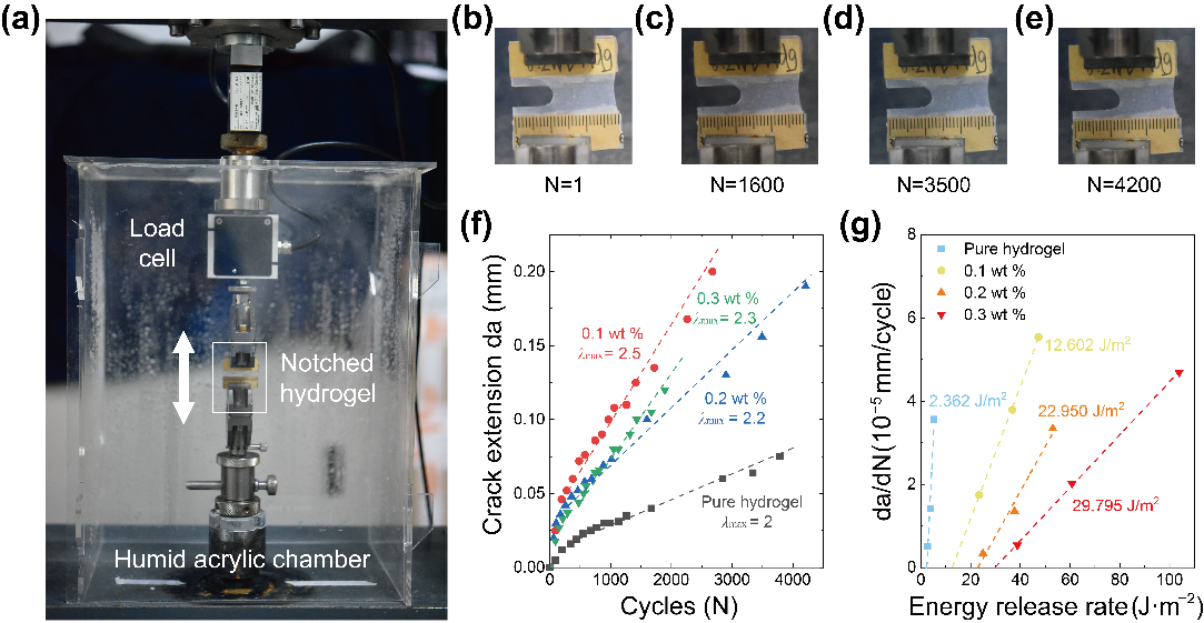 图3.芳纶纳米纤维增强的水凝胶复合材料的疲劳性能测试