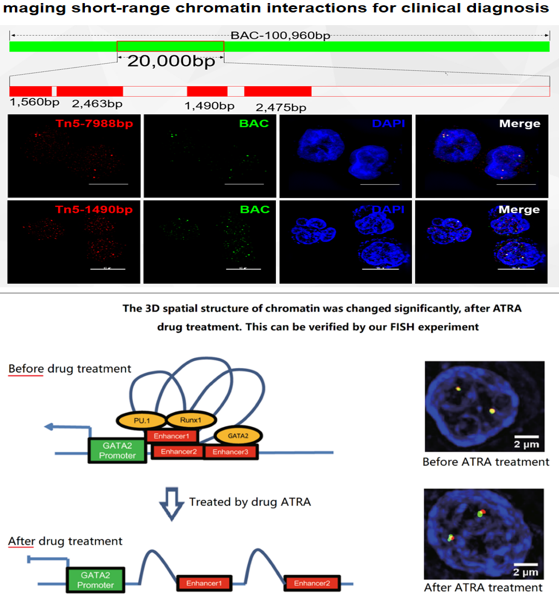 北京信息科学与技术国家研究中心副研究员高军涛团队参展的“基于超分辨成像的空间多组学探针设计新方法”项目荣获金奖。该项目开发了一种新的荧光原位杂交(FISH)技术--Tn5 FISH,实现了约1kb的图像分辨率,是传统FISH的约100倍。Tn5-FISH能够对各种染色质相互作用和靶位点进行定位和成像,特别是对短于BAC长度的染色质相互作用进行定位和成像,而传统的BAC FISH无法验证这些相互作用。Tn5 FISH作为基于图像的空间多组学的构件,将FISH技术的应用扩展到研究染色质三维结构和辅助诊断染色体变异导致的疾病;成为快速分子诊断、检测或确认癌症中典型细胞遗传学变化的临床工具;相关市场规模超过150亿欧元。