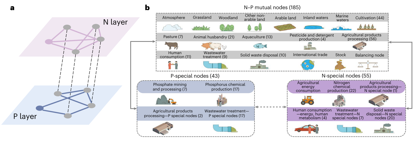 图1.中国氮-磷耦合循环网络的结构示意图