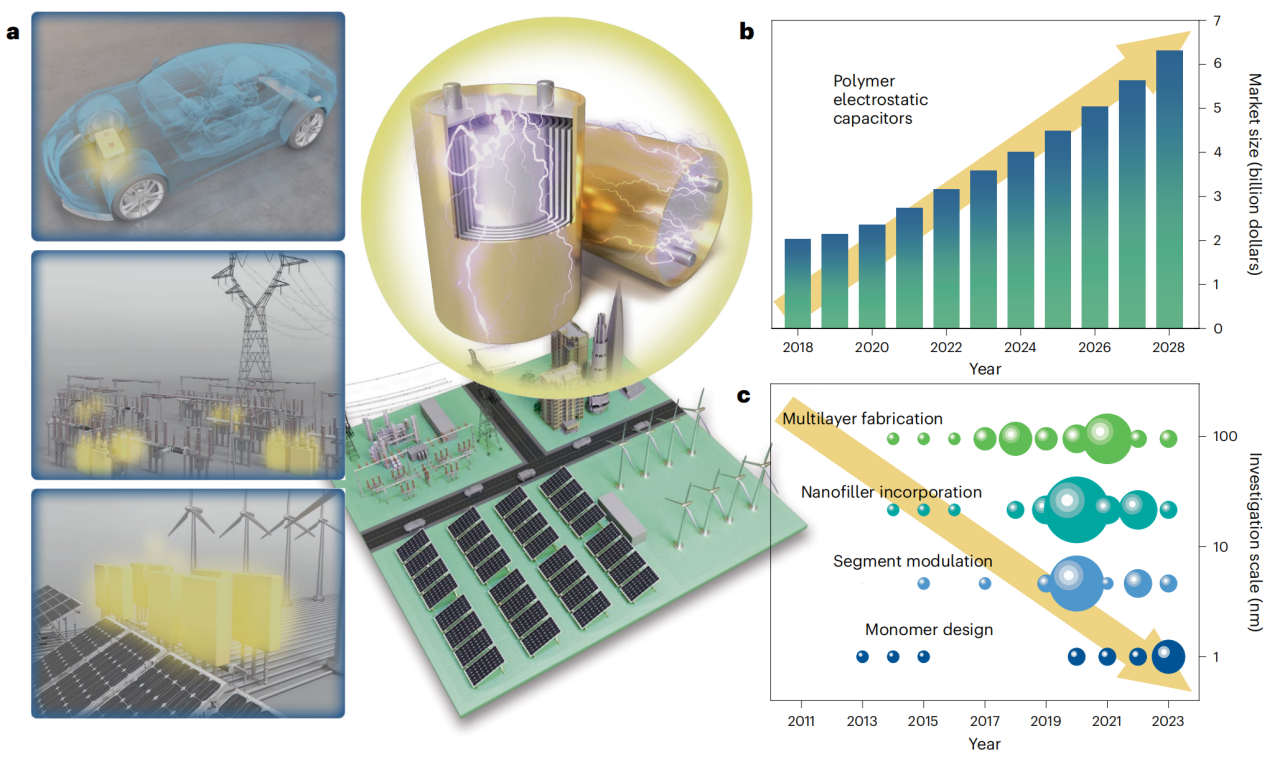 该综述以“用于电容储能的聚合物基纳米复合电介质”(Polymer nanocomposite dielectrics for capacitive energy storage)为题,发表于期刊《自然·纳米技术》(Nature Nanotechnology)上。论文的第一作者为材料学院2020级直博生杨敏铮,通讯作者为沈洋,共同通讯作者为中国科学院院士、mk手机注册材料学院教授南策文和澳大利亚卧龙岗大学教授张树君。