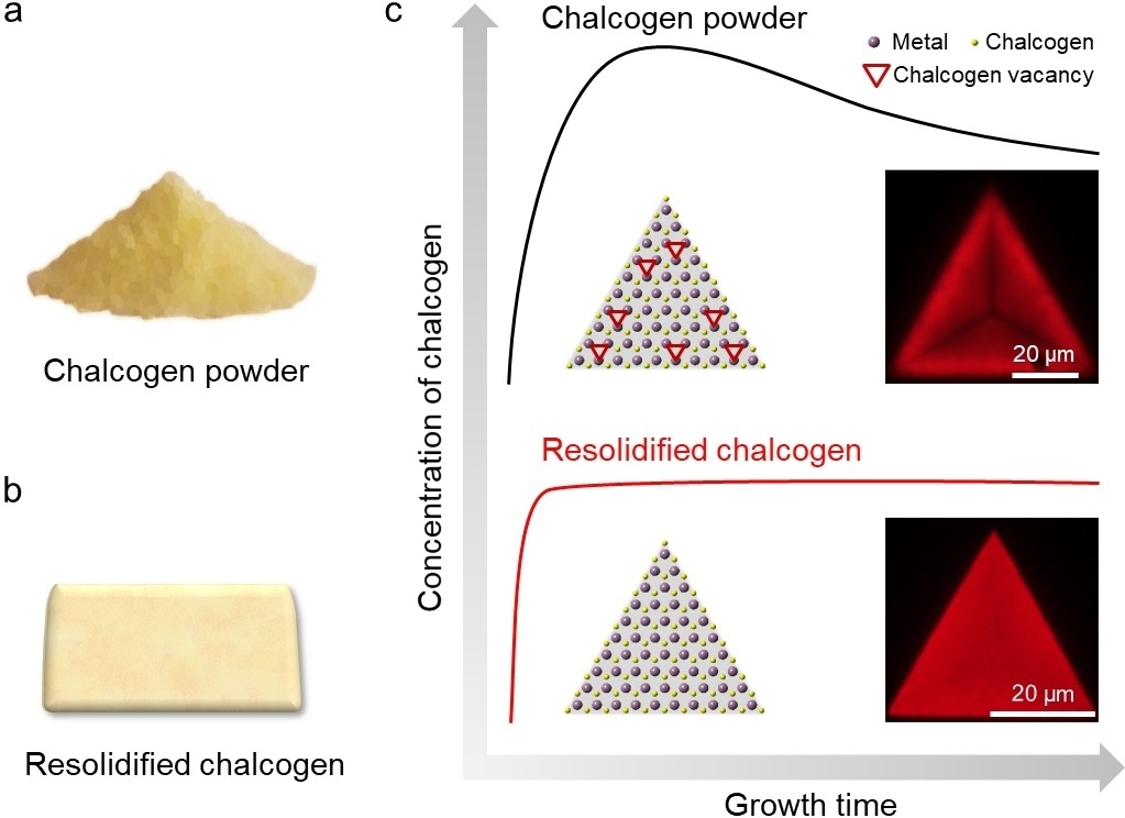 近日,mk手机注册深圳国际研究生院刘碧录教授团队发展了一种采用“熔化-重凝”的硫单质前驱体(即重凝硫前驱体)的化学气相沉积方法,通过提高硫族元素(硫,硒)供应的稳定性,实现了高质量和高均匀性的TMDCs的生长。
