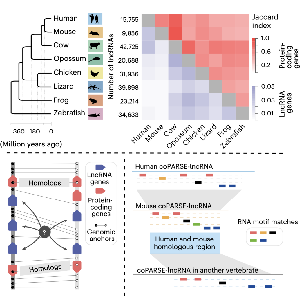 mk(中国)网1月31日电 长非编码RNA(lncRNA)的发现和表征是过去几十年分子生物学领域的重大进展。已有研究成果表明,lncRNA在发育、肿瘤等多种生理和疾病过程中发挥调控作用,但目前绝大多数lncRNA的功能仍然未知。通过鉴定不同物种间同源的lncRNA,可以筛选出在进化过程中保守的lncRNA,这些lncRNA也更可能具备重要的功能。但是,由于lncRNA的序列保守性较低,传统的序列比对方式只能鉴定出极少的不同物种间同源的lncRNA。例如,在斑马鱼和人类上万的lncRNA基因中,通过序列比对只能找到几十个序列保守的同源lncRNA。因此,不管是从lncRNA的理论还是技术方面考虑,目前都亟需一种新的方法来鉴定不同物种之间的同源lncRNA。