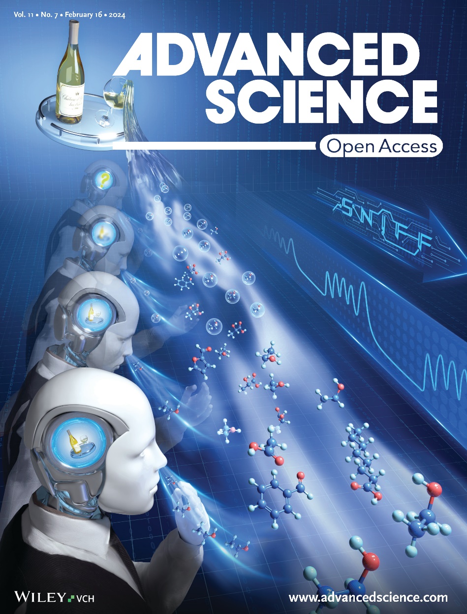相关研究成果以“像品酒师一样嗅闻:多重重叠嗅闻(MOSS)策略增强电子鼻的气味辨识能力”(Sniffing Like a Wine Taster: Multiple Overlapping Sniffs ⟮MOSS⟯ Strategy Enhances Electronic Nose Odor Recognition Capability)为题发表于《先进科学》(Advanced Science)2024年第7期,被选为期刊内封面文章。同时该文作为亮点文章,被Wiley杂志社旗下国际科研新闻传播平台Advanced Science News以“模仿品酒师嗅闻的人工鼻”(An artificial nose that sniffs like a wine taster)为题进行了采访报道,并发布于Wiley中国官方公众号Advanced Science News上。