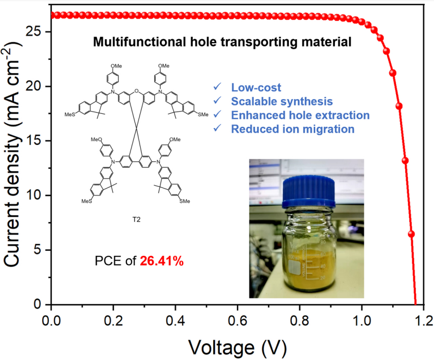 相关研究成果以“通过多功能空穴传输材料实现高效率稳定钙钛矿太阳能电池”(Highly efficient and stable perovskite solar cells via a multifunctional hole transporting material)为题,于近日发表于国际学术期刊《焦耳》(Joule)。