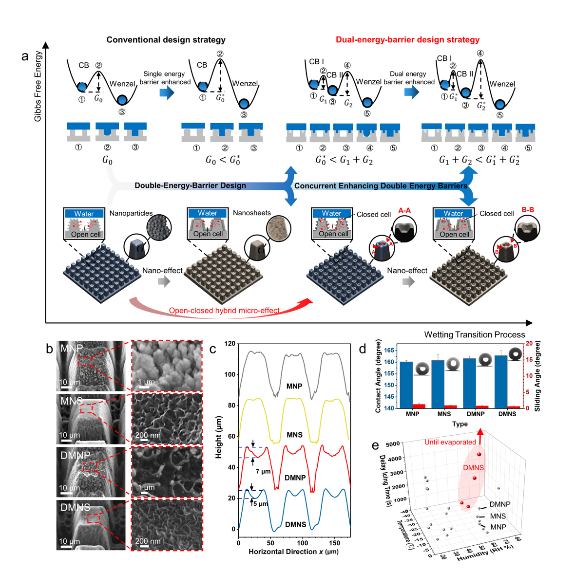 5月3日,该研究以“长时间延迟结冰的双能垒稳定超疏水结构”(Dual-Energy-Barrier Stable Superhydrophobic Structures for Long Icing Delay)为题,发表于《美国化学学会纳米杂志》(ACS Nano)上。