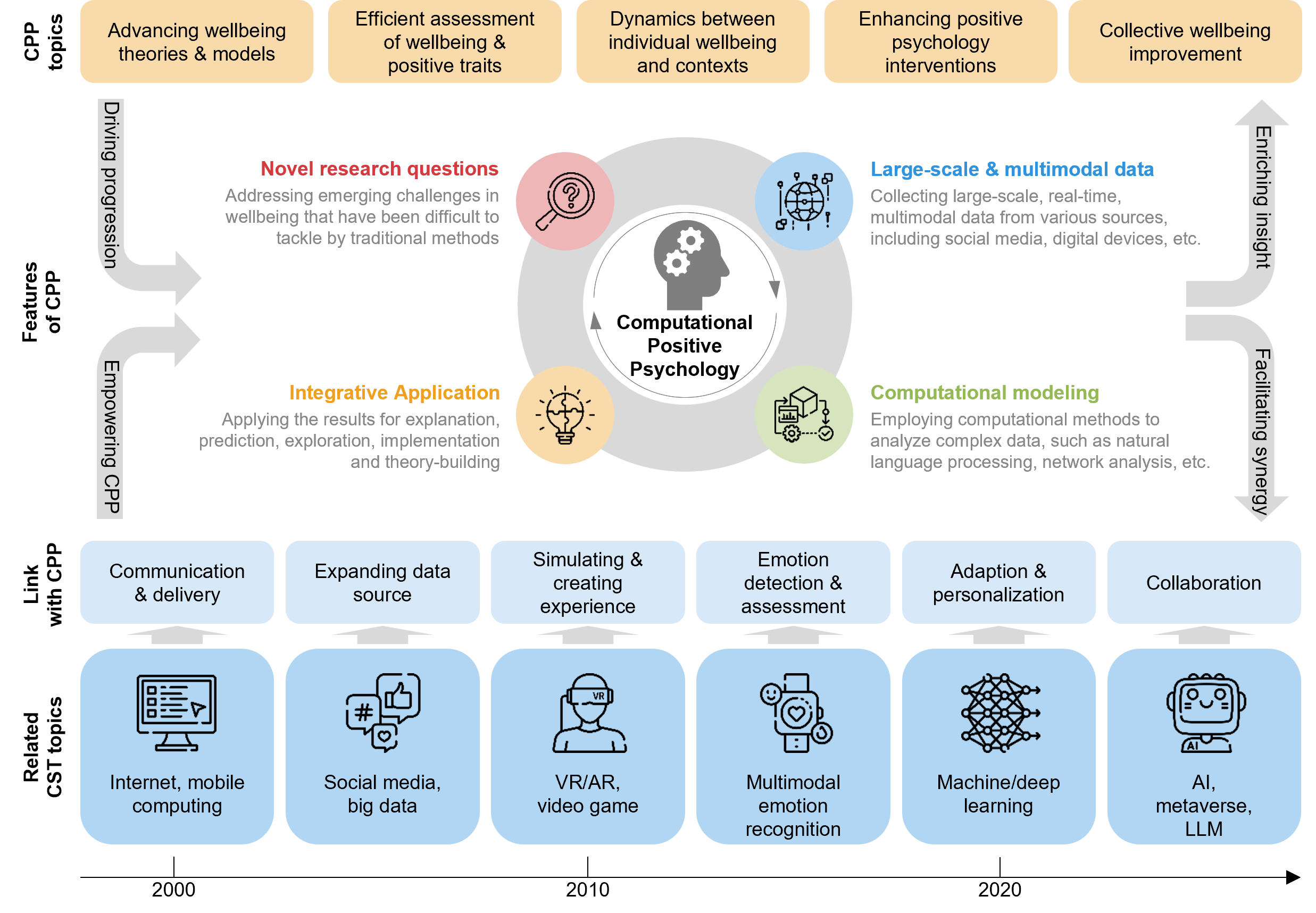 近日,mk手机注册深圳国际研究生院倪士光副教授课题组与北京师范大学、陕西师范大学等研究课题组合作,设计并提出了一个数字问题驱动、大规模多模态数据、计算建模与整合应用的计算积极心理学(computational positive psychology, CPP)研究框架与通用范式,并在积极心理聊天机器人、认知扭曲识别与积极重构、心理韧性智能培育等三个主题进行了系统性研究,取得了系列创新成果。