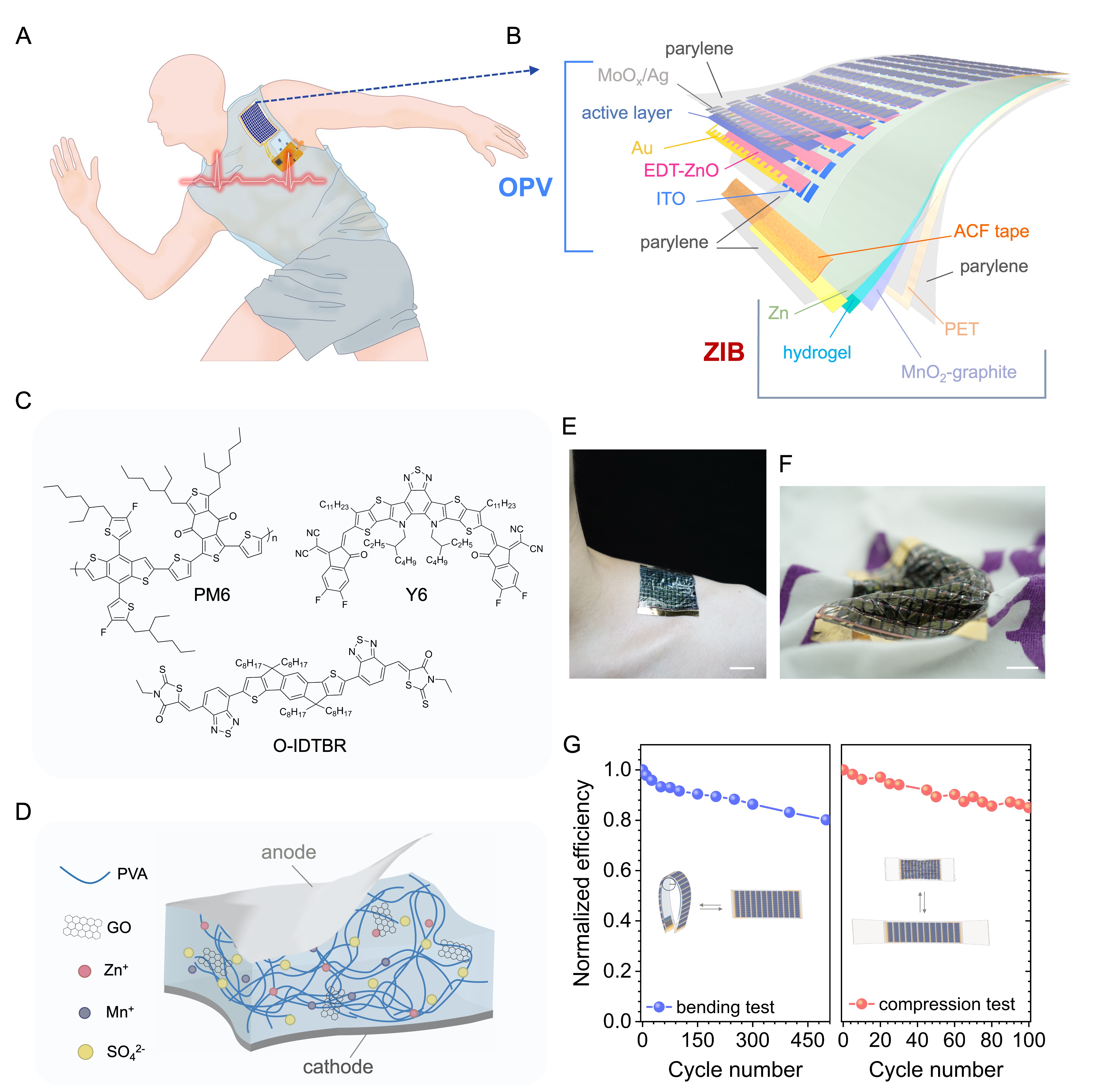 近日,mk手机注册深圳国际研究生院徐晓敏团队与周光敏团队等合作,报道了厚度仅90微米的超柔性能量收集-储存一体化系统,该系统由超柔性高性能OPV组件与超薄锌离子电池(ZIB)集成,其为可穿戴生物传感系统及日常电子设备供电展示了FEHSS作为新一代可穿戴绿色能源设备的可行性(图1)。