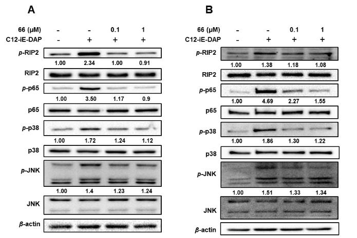 图2.化合物66抑制NOD1信号通路