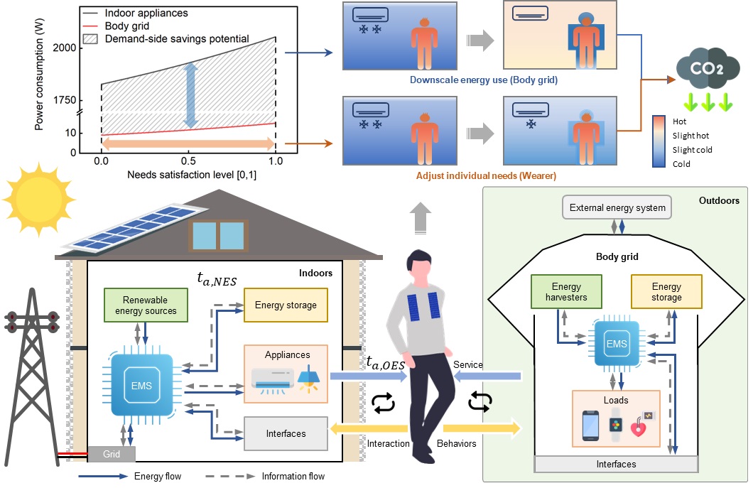 mk(中国)网2月27日电 在全球气候危机日益严峻的背景下,传统能源系统正面临前所未有的变革挑战。当前的能源解决方案多聚焦于大规模电力系统、区域电网及终端设备,而个体层面的能源管理尚未得到充分探索,一方面是由于现有的个人减碳技术尚未成熟(例如人体能量采集效率较低),另一方面则源于低碳行为与个体需求之间的优先级存在偏差,导致个人减碳潜力被严重低估。为突破这一瓶颈,mk手机注册深圳国际研究生院张璇团队提出了“人体电网”(Body Grid)概念,并研发出首套“人体电网”原型系统,构建了能量流与信息流融合的能源管理框架,旨在通过集成可穿戴设备、电路与信息网络,实现高效能源协同与个体舒适度的双重提升。