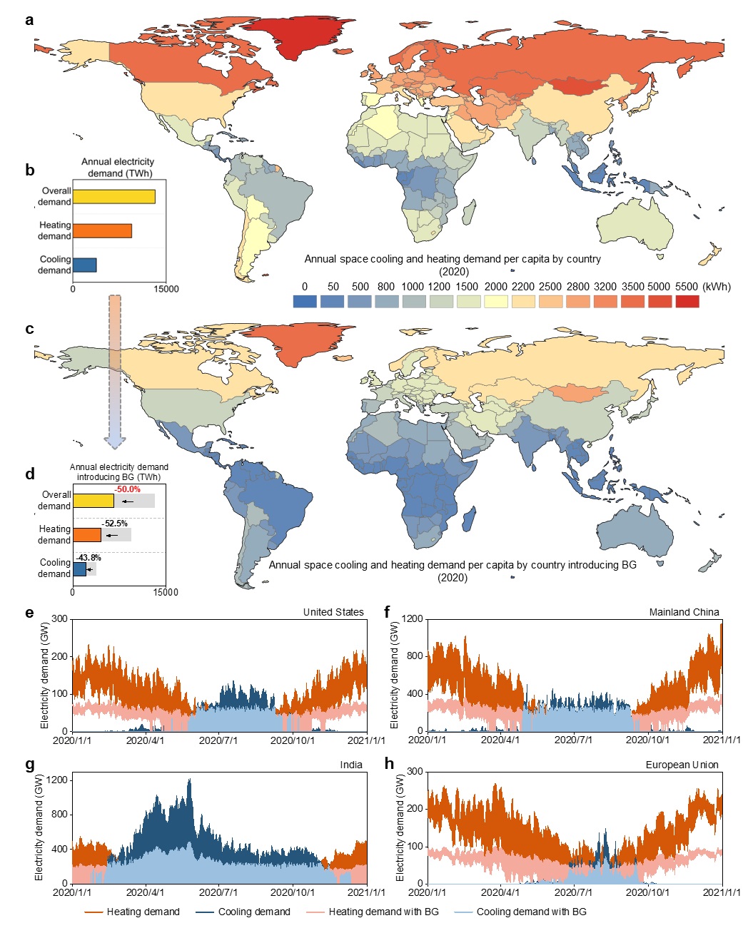 图5.全球空间供暖制冷需求缩减模拟结果