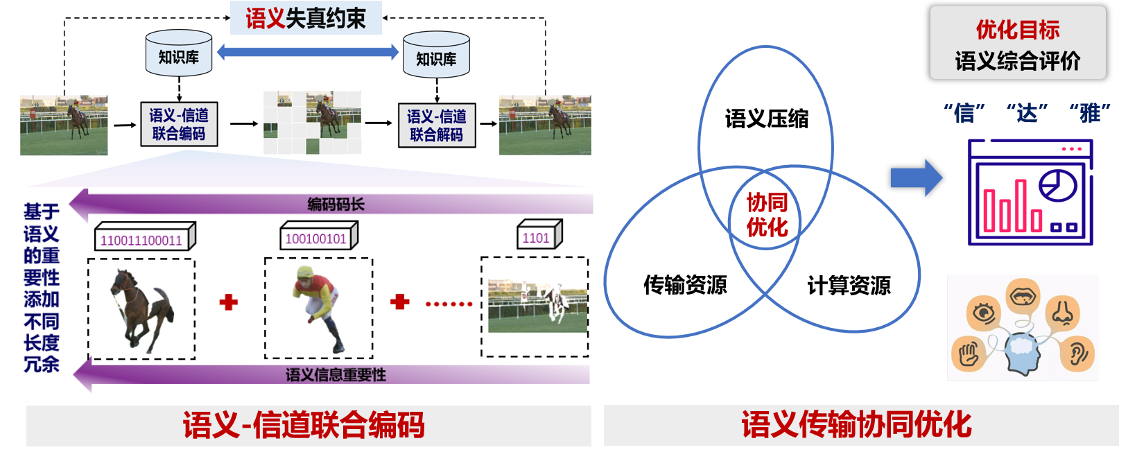 电子系陶晓明、秦志金、段一平在语义通信领域取得重要研究进展,创新提出了多模态语义表征与优化理论,设计了多模态语义-信道联合编码方法,构建了语义传输服务质量约束下的协同优化模型,为无线通信多模态语义编码基础理论与方法作出原创性贡献。成果应用于智慧园区安全监控、自动驾驶等领域多模态数据的采集、传输与处理,有效提升了视觉、听觉、语言等多模态业务的服务质量,展现了良好的应用前景。“无线通信多模态语义编码理论与方法”成果获得2024年度中国电子学会自然科学一等奖。