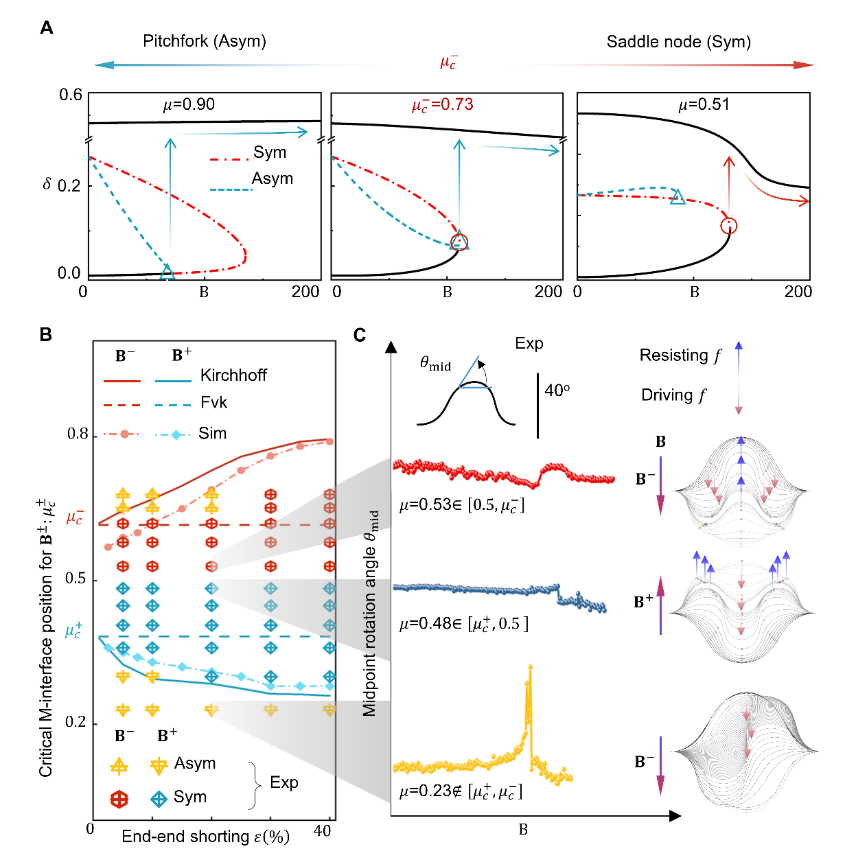 相关研究成果以“磁驱动设计实现对称性突跳失稳”(Achieving symmetric snap-through buckling via designed magnetic actuation)为题,于5月14日发表于《科学进展》(Science Advances)。