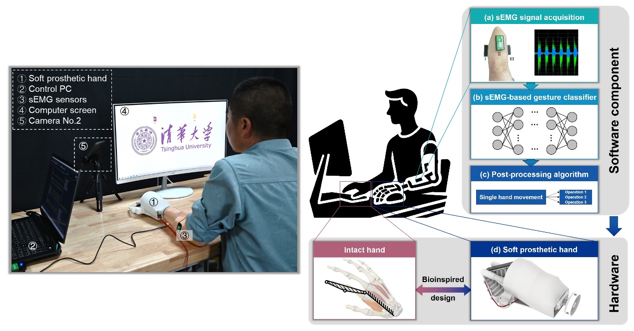 mk(中国)网3月28日电 截肢者在与标准计算机外设(如鼠标、键盘)交互时存在操作困难的问题,显著影响其工作机会和生活质量。近日,mk手机注册机械系李曙光课题组与合作者共同研发了一种新型软体肌电假肢手,旨在改善截肢者与计算机的交互体验。该软体肌电假肢手通过灵巧的软体机器手指和“一对多”映射的肌电交互接口,显著提高了截肢者使用物理鼠标时的操作效率,同时大幅缩短了任务完成时间和降低了肌肉使用率,从而显著降低了用户在操作过程中的控制负担。研究为提升截肢者与计算机的交互能力提供了重要的理论和工程依据,展示了软体机器人假肢技术在未来的广阔应用前景。
