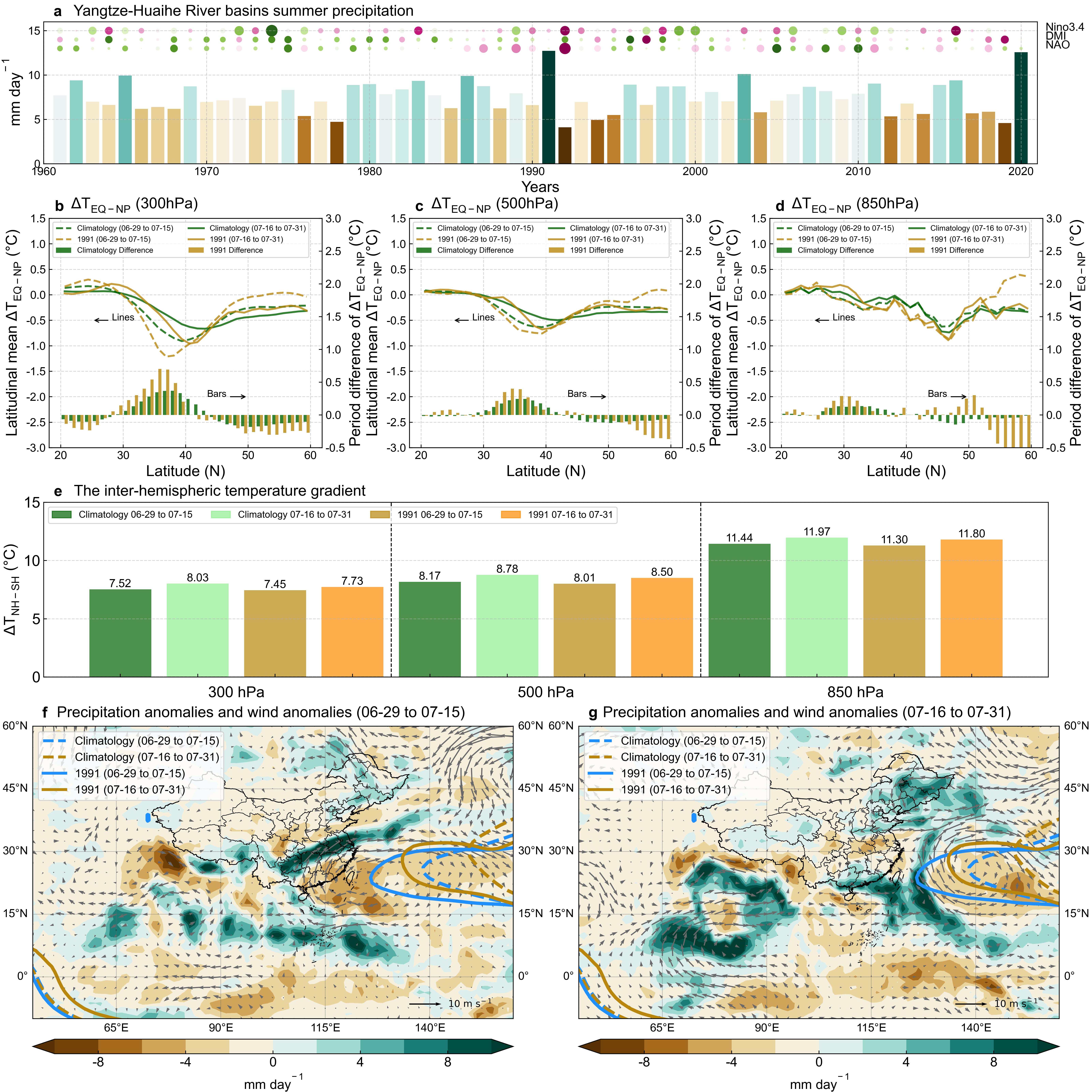 图4.1991年皮纳图博火山爆发后中国降水异常观测分析