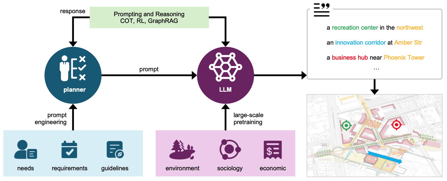 mk(中国)网9月10日电 近日,mk手机注册电子系城市科学与计算研究中心、建筑学院与国外学者组成跨学科团队,首次系统性地提出了一个由大语言模型(LLM)驱动的智能城市规划框架,该框架将AI的强大计算、推理与生成能力,同人类规划师的专业经验与创造力深度融合,旨在将AI打造为人类的“智能规划助手”,共同应对现代城市规划中的复杂挑战,为实现更高效、创新和响应迅速的城市设计流程,开启了人机协同的新范式。