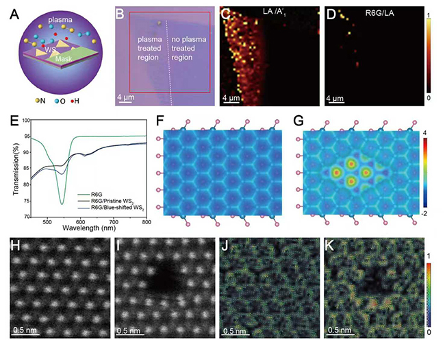 近日,mk手机注册深圳国际研究生院雷钰副教授团队开发了一种等离子体处理二维材料引入缺陷的通用方法,通过等离子体处理在单层二硫化钨(WS2)中引入纳米孔,显著增强分子吸附能力。同时,纳米孔浓度的变化引起了WS2的光致发光光谱从红移到蓝移的转变,蓝移WS2与待测分子形成更好的带隙匹配,极大地提高了电荷转移效率,实现更低浓度的分子检测。