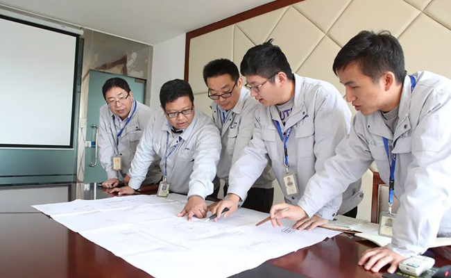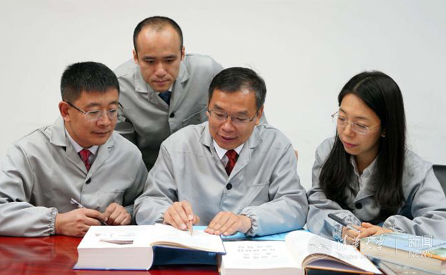 项目主要完成人在讨论研究工作(左起:杨有福、李威、韩林海、杨华)