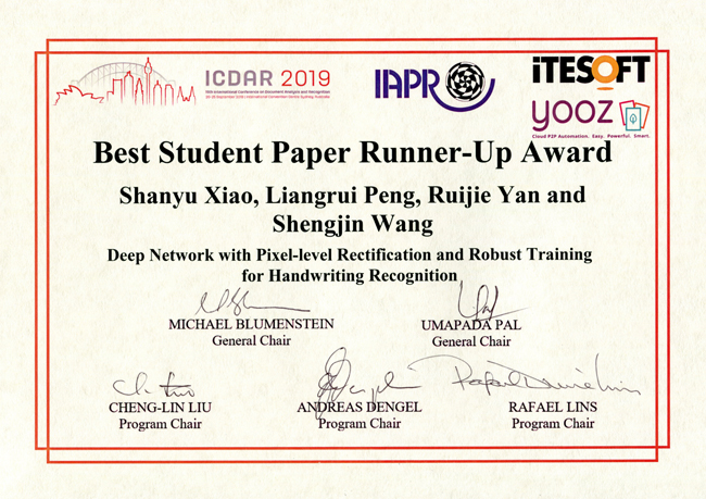 清华电子系研究生肖善誉等在ICDAR 2019国际会议上获奖