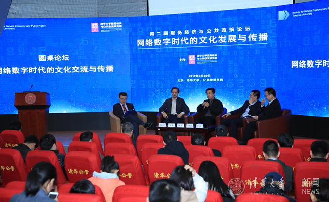 在主题演讲后的圆桌论坛上,郑浩、胡钰、刘绍坚、罗立彬分别围绕“网络数字时代的文化交流与传播”这一主题,从文化经济贸易、文化人才培养、文化产业管理和文化公共服务等多个方面发表见解。现场观众就“如何生产大众喜闻乐见的文化产品”“慕课和网络文化教育”等多个话题,与专家学者展开交流互动。