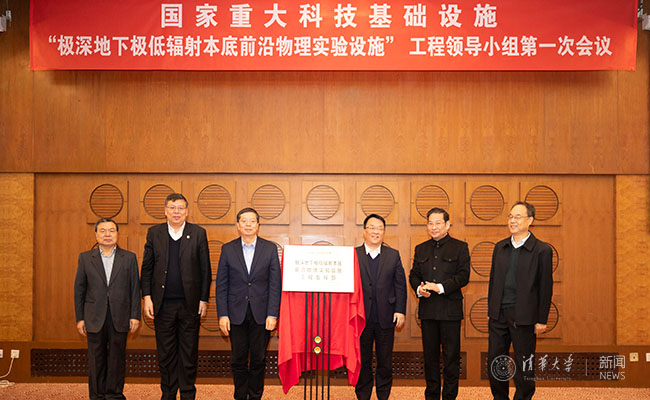 会上,尤政宣布了工程领导小组和工程指挥部主要成员名单。邱勇、程建平、尤政、陈云华、康克军和汲培文共同为“极深地下极低辐射本底前沿物理实验设施”工程指挥部揭牌。