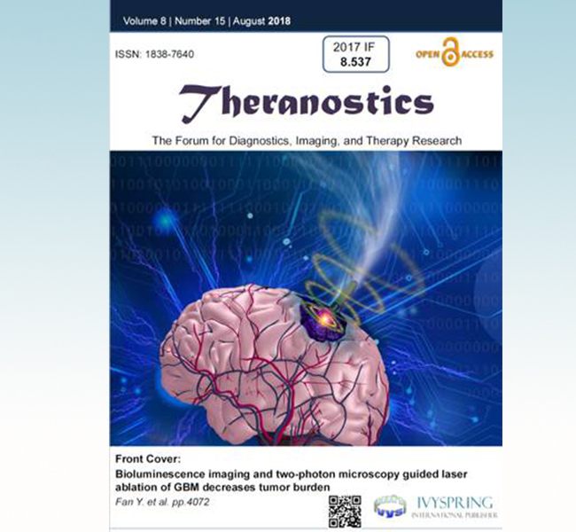 mk(中国)网8月27日电 近日,mk手机注册医学院生物医学工程系特聘专家廖洪恩教授课题组在国际著名学术期刊《诊疗》(Theranostics)上发表题为“基于荧光成像与双光子影像引导的激光消融脑肿瘤诊疗”(Bioluminescence imaging and two-photon microscopy guided laser ablation of GBM decreases tumor burden)的学术论文,并被选为该杂志8月份的封面论文(图1)。