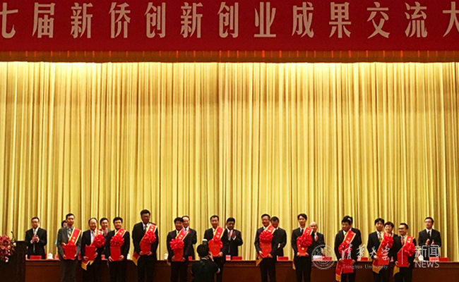 廖洪恩(右二)被授予“中国侨界贡献奖”一等奖颁奖现场