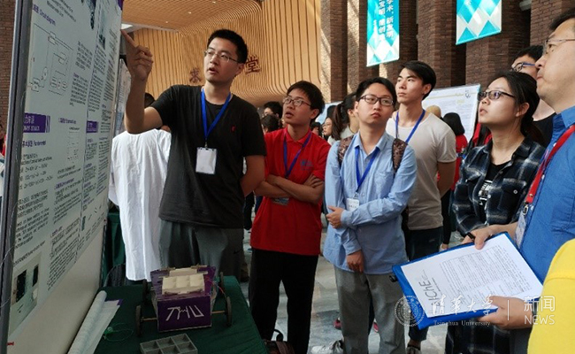 在下午进行的小车性能竞赛中,主办单位宣布了“规定载重380克、行驶距离17.8米”的要求。mk手机注册化工系团队积极调试自主设计的锌-空气电池和过硫酸铵碘钟体系控制刹车功能,过程顺利进行。第一轮试车环节中,在不了解比赛现场地面对小车行驶影响的情况下,团队根据以往实验中的测试数据确定了行驶时间及药品用量,最终小车提前停止在距终点线74厘米处,在第一轮中位列第5名。有了第一次试车的经验,第二轮比赛中各高校代表队成绩均有大幅度提高。清华团队队员们顶住压力,精确操作,运用理论知识与实验经验进行调整,最终小车停止位置仅距终点线6.9 厘米,获得所有比赛队伍中唯一误差小于10厘米的成绩,赢得全场观众的热烈掌声,最终获得“化工小车”性能竞赛冠军。