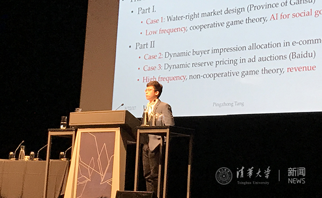 除此以外,唐平中还应邀在大会作半天的专题讲授 (Tutorial),系统介绍拍卖理论在电商场景的应用,并于电子商务分会(E-commerce workshop)上作一小时关于“高频机制设计”(High-frequency mechanism design)的特邀报告。