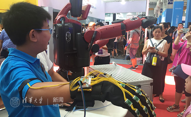 基于数据手套的人机交互系统由技术负责人、河北清华发展研究人工智能与机器人创新中心副主任、助理研究员方斌主导研制,其中数据手套可以完整捕获人体手势动作信息,利用这些信息来便捷控制机器人。该款数据手套可以精细捕捉整个手臂和手指的加速度、速度、角速度、姿态、位置等运动信息,利用这些信息可以用于人机交互、手语识别和康复评估。