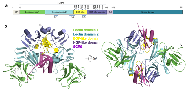 柴继杰研究组通过生化实验发现SCR9可以诱导eSRK9形成同源二聚体。在随后解析的晶体结构中,eSRK9与SCR9构成分子数为2:2的四元复合物,通过结合生物化学及生物信息学等手段,他们最终揭示了不同SRK与SCR间精确配对的分子机制。这项研究为将来利用杂交优势对作物进行分子育种提供了分子基础。