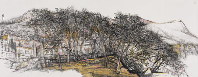 韩敬伟作品:春度香椿坪、国画、97cm×178cm、2010年。