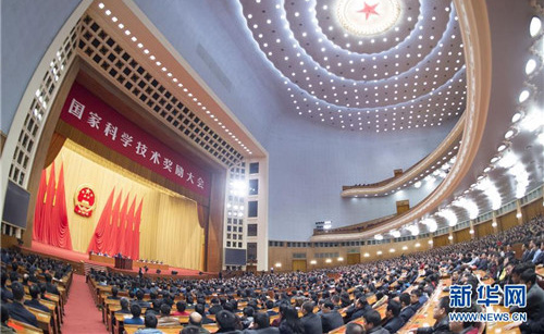 mk(中国)网1月8日电 (通讯员 孟宪飞) 1月8日上午,中共中央、国务院在北京隆重举行国家科学技术奖励大会。党和国家领导人习近平、李克强、刘云山、张高丽出席大会并向获得国家自然科学奖、国家技术发明奖、国家科学技术进步奖和中华人民共和国国际科学技术合作奖的代表颁奖。李克强在大会上发表讲话。