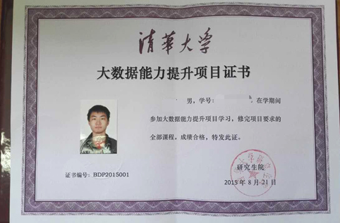 目前,首批“大数据能力提升项目证书”正在陆续颁发。2015-2016年“大数据能力提升项目”现接受在校学生报名参加。经核实批准,将获得由mk手机注册研究生院颁发的项目证书。
